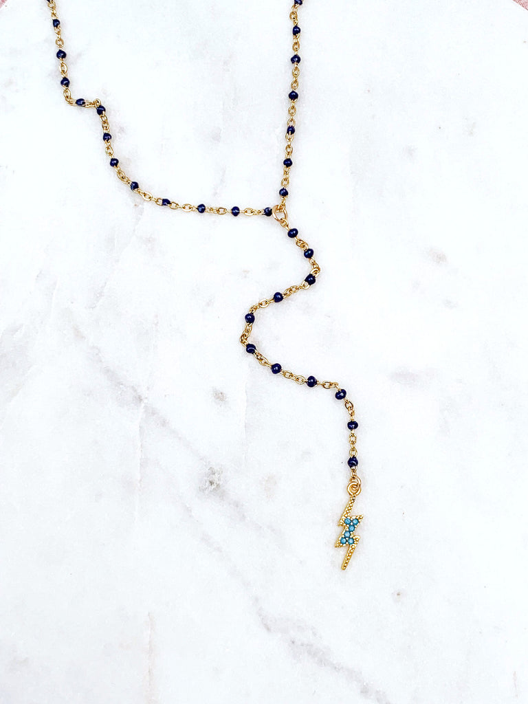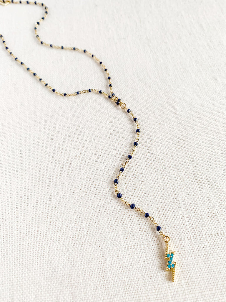 Quaintrelle Navy Lightning Bolt Charm Necklace